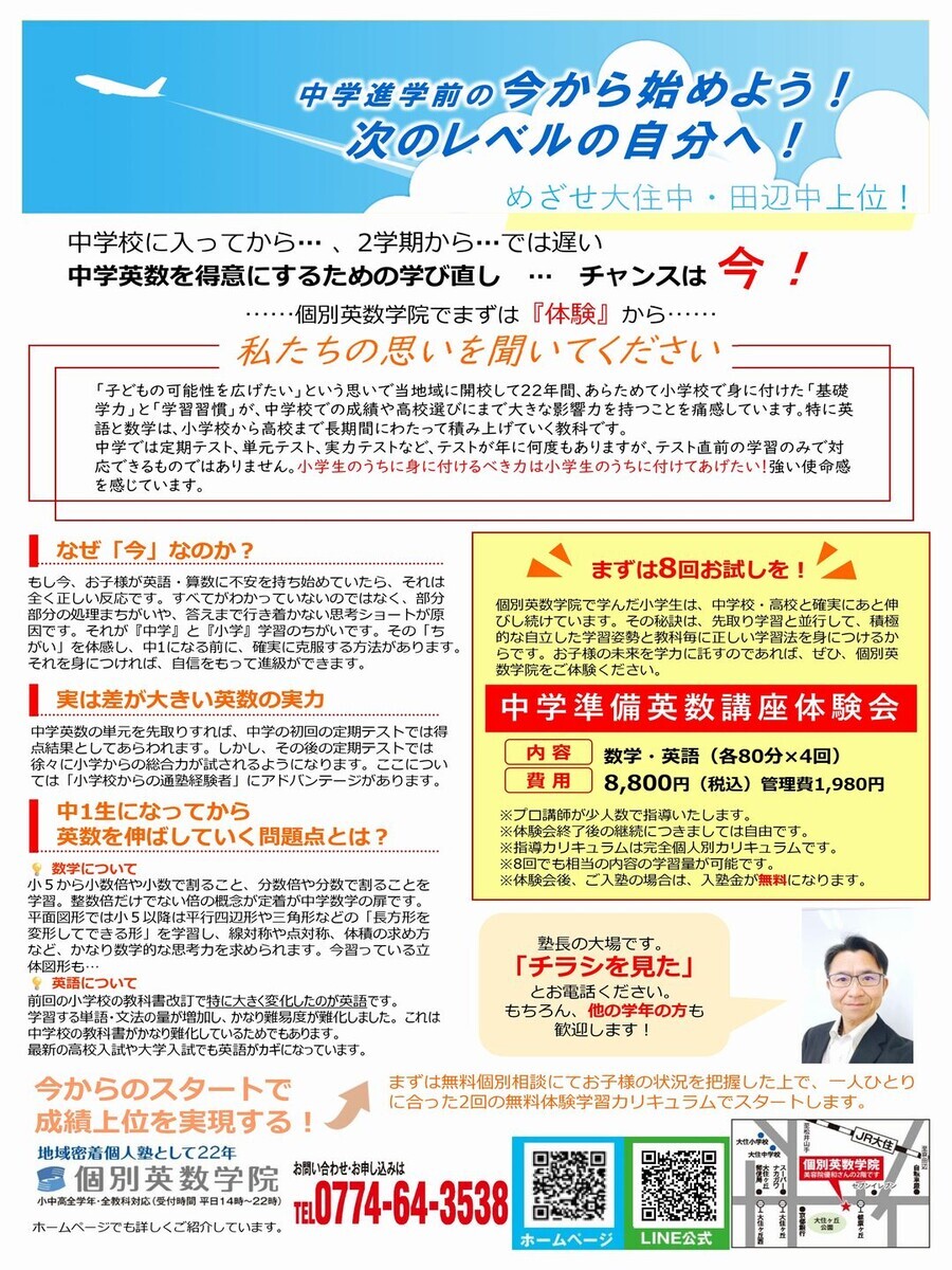 「中学校入学に向けて、学習準備はどのようにするべきか…」という保護者様の不安に1つの明快な答えがあります。